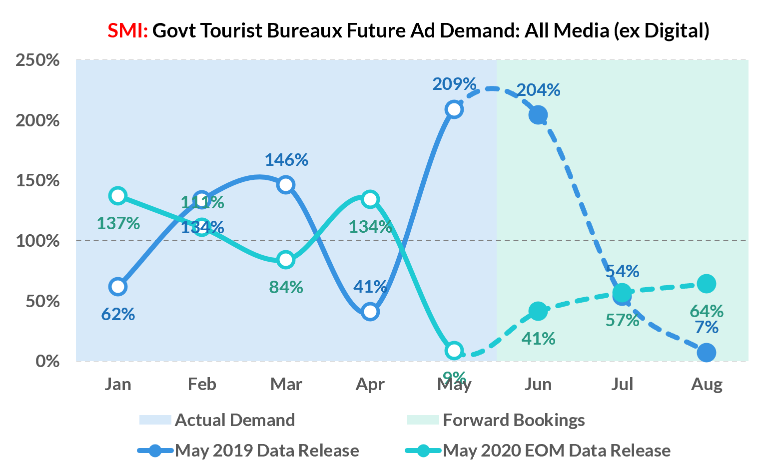 “But SMI’s Travel category comprises seven sub categories, and the overall demand is being pulled lower by the very low future demand seen in the Airlines and Travel Agents sub categories. But the Government Tourist Bureaux category is reporting very strong forward demand with higher demand in July than at this point last year and very, very strong August demand of 64%.’’
